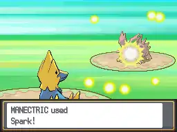 Yellow sparks surround Manectric's body and it tackles the opponent. When the opponent gets hit, they become surrounded in electricity. | ||