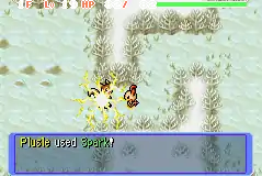 | Plusle releases two beams of electricity from its cheeks at the opponent. | |||