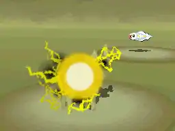 The orbs at the end of Chinchou's antennae glow yellow and it releases an electrical blast from them, or Chinchou's body becomes surrounded in light blue electricity and it releases multiple electrical blasts from it at the opponent. | ||