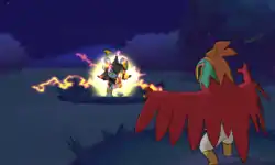 Raikou releases electrical sparks from the purple cloud on its back at the opponent. | ||