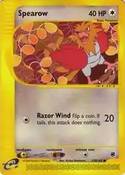 Spearow (Japanese: オニスズメ Onisuzume) is a Colorless-type Basic Pokémon card. It is part of the Expedition Base Set.