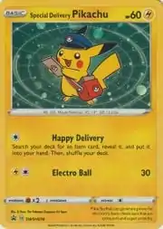 Special Delivery Pikachu is a Lightning-type Basic Pokémon card. It is one of the SWSH Black Star Promos.