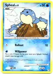 Rollout is a move in the Pokémon games that Spheal can learn via Move Tutor. This card's Pokédex entry comes from Pokémon Diamond and Pearl.