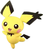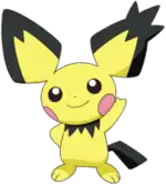 Spiky-eared Pichu (Japanese: ギザみみピチュー Gizamimi Pichu) is a Pichu. Its form is different from the one of an ordinary Pichu, as it has three spikes at the tip of its left ear, hence its name.