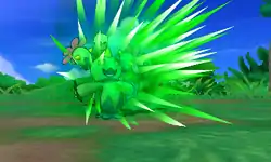 If powered up by a Grassium Z into Z-Spiky Shield, the user's Defense stat rises by one stage.