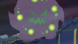 A Spiritomb first appeared in Ring Around the Roserade II, under the ownership of Cynthia. It helped Platinum train for her upcoming Gym challenge against Gardenia. With her Psychic abilities, she was able to seal Tru's Razor Leaf alongside Prinplup's Water attack and used them to save Rad Rickshaw, inadvertently getting Diamond, Pearl, and Platinum a set of bicycles. Spiritomb was later used against Cyrus, where she defeated his Honchkrow, but was then defeated by Weavile.
