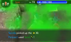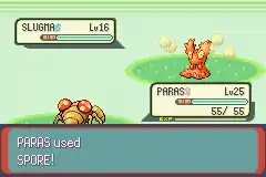 Paras releases a white powder from the mushrooms on its back at the opponent, putting it to sleep. | ||