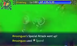 Foongus releases a sparkling, yellow or green powder from its mouth at the opponent, putting it to sleep. | ||