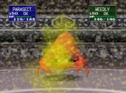 Paras puts its claws together and forms spores in between them. When the opponent is hit with the spores, they fall asleep. | ||