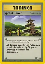 Sprout Tower (Japanese: マダツボミのとう Madatsubomi Tower) is a Stadium card. It is part of the Neo Genesis expansion.