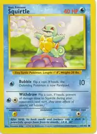 Squirtle (Japanese: ゼニガメ Zenigame) is a Water-type Basic Pokémon card. It was first released as part of the Base Set.