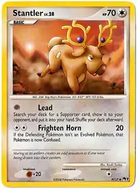 Stantler (Japanese: オドシシ Odoshishi) is a Colorless-type Basic Pokémon card. It was first released as part of the Secret Wonders expansion.