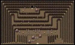 Stark Mountain (Japanese: ハードマウンテン Hard Mountain) is a volcano located in the north of the Battle Zone in Sinnoh, at the end of Route 227. It is home to the Legendary Pokémon Heatran, which resides in the innermost chamber. Both Strength and Rock Smash are required to pass through the mountain's caverns.