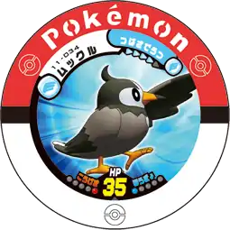 Starly (Japanese: ムックル Mukkuru) is a Pokémon Battrio puck. It is part of the Decisive Battle! Kyogre and Groudon expansion.