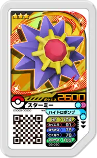Starmie (Japanese: スターミー Starmie) is a Grade 3 Pokémon Ga-Olé disk. It is part of the third Dash set.