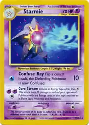 Starmie (Japanese: スターミー Starmie) is a Psychic-type Stage 1 Pokémon card. It is part of the Neo Revelation expansion.