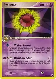 Starmie (Japanese: スターミー Starmie) is a Psychic-type Stage 1 Pokémon card. It is part of the EX Hidden Legends expansion.