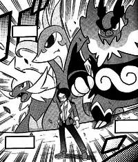In Pokémon Gold & Silver: The Golden Boys, much like Pokémon Gold and Silver, Gold is offered the choice of one of the three Johto starter Pokémon – Chikorita, Cyndaquil or Totodile – to borrow so that he may run an errand for Professor Elm. Gold chooses Totodile, which Elm allows him to keep after the errand is completed. Also, like in the games, Black, who is based on Silver, steals a Chikorita from Elm's lab while Gold is away on his errand.