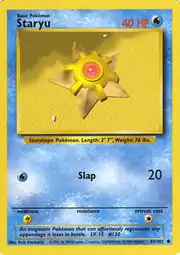 Staryu (Japanese: ヒトデマン Hitodeman) is a Water-type Basic Pokémon card. It was first released as part of the Base Set.