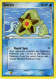Staryu (Japanese: ヒトデマン Hitodeman) is a Water-type Basic Pokémon card. It is part of the EX Deoxys expansion.