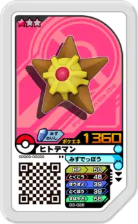 Staryu (Japanese: ヒトデマン Hitodeman) is a Grade 1 Pokémon Ga-Olé disk. It is part of the third Dash set.