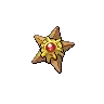 These starshape Pokémon that evolve into Starmie are found in large numbers at the seashore. At night, Staryu's red center glows and blinks on and off. It's said that as long as its red center remains, it can regrow its limbs. Whether it's related to Cleffa, another Pokémon with a vaguely star-shaped appearance, is unknown.