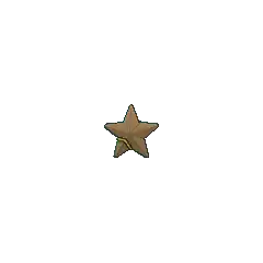 "A Star Shape Pokémon. It gathers in groups and flashes the red jewel in the center of its body in time to the twinkling of the stars in the night sky. If it loses appendages, it can regenerate them right away. It can also use Camouflage, which allows it to change its type to match the surrounding terrain. If a Water Stone is used on it, evolves into Starmie."