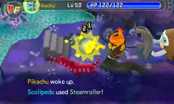 Steamroller inflicts damage and has a 30% chance of causing the target to flinch. Steamroller cannot make a target with a substitute flinch.