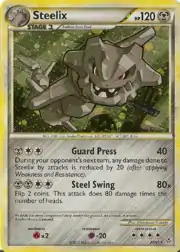 Steelix (Japanese: ハガネール Haganeil) is a Metal-type Stage 1 Pokémon card. It is part of the Unleashed expansion.