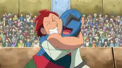 Sawk continued to watch the first round battles with his Trainer in the next episode. During the break between battles, Stephan and Sawk volunteered to help Ash and Scraggy perfect Focus Blast, but they were interrupted by Bianca, who was, again, excitably admiring Sawk and feeling his muscles. In Search for the Clubultimate!, Sawk was used to battle Cilan's Pansage. Sawk used Close Combat first to block Pansage's Bullet Seed and then for a direct attack. As Sawk attacked with Karate Chop, Pansage countered by using Bite on Sawk's arm. While Pansage was still holding onto Sawk's arm, the Karate Pokémon smashed him into the ground. Pansage still stood up, but was then defeated with a Low Sweep.