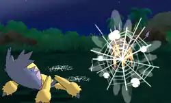 Galvantula shoots out several globs of sticky material from its mouth at the opponent. When the globs hit the opponent, they turn into sticky nets that trap them. | ||