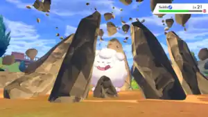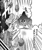 Boldore slams its front legs onto the ground, causing pointed light blue rock pillars to appear out of the ground and rush towards the opponent. | ||