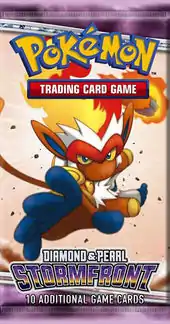 Pokémon TCG: Diamond & Pearl—Stormfront (Japanese: 破空の激闘 Intense Fight in the Destroyed Sky) is the name given to the seventh and final main expansion of cards from the Diamond & Pearl Series of the Pokémon Trading Card Game. It is the sixth and final main expansion from the DP Era of the Pokémon Card Game in Japan. The set continues to feature Generation IV Pokémon and Pokémon LV.X in the card game.