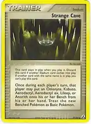 Strange Cave (Japanese: 妖しい洞窟 Mystery Cave) is a Stadium card. It is part of the EX Legend Maker expansion.