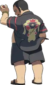A Street Thug (Japanese: こわいおじさん Scary Man) is a type of Pokémon Trainer introduced in Generation VI. They are depicted as large, brutish men wearing black clothes with an image of a Pokémon on the back, with Plusle in Pokémon Omega Ruby and Alpha Sapphire and Liepard in Pokémon Masters EX. In Pokémon Masters EX, they also are seen wearing a shirt with an image of a Purrloin. They use Dark-type Pokémon, though their appearances at the Mauville Food Court show them using a variety of different Pokémon. Their female counterpart in Omega Ruby and Alpha Sapphire is the Delinquent, while in Masters, their counterpart is the Punk Girl.
