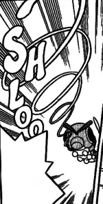 | Spewpa shoots a stream of white thread from its mouth at the opponent, preventing it from moving by tying it up. | |||