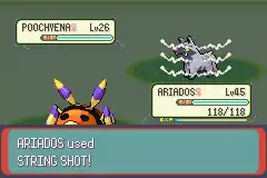 | Spinarak shoots out white string to tie up the foe. | |||