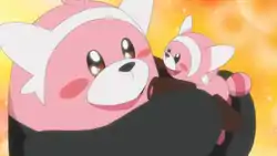 During a plot by Team Rocket to steal the Pokémon at Aether Paradise in Don't Ignore the Small Stufful!, Stufful met and became attached to Jessie, although it refused to be caught. When Bewear came to pick up Team Rocket, Bewear recognized Stufful as its child and took them all back to its den. While doing so, it allowed Stufful to spin a helicopter blade that would allow them to fly.