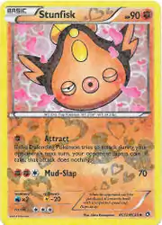 Attract and Mud-Slap are both moves in the Pokémon games that Stunfisk can learn. This card's Pokédex entry comes from Pokémon Black 2 and White 2.