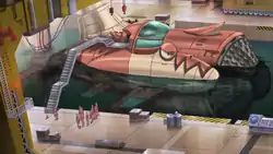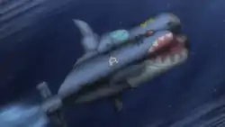 The submarine reappeared, this time in its Alpha Sapphire guise, in The Cavern. Team Aqua used it to exit the Seafloor Cavern after Archie had awakened Primal Kyogre. Once they surfaced, Archie was shocked to discover that the devastation Kyogre was causing was far beyond anything that he had planned for.