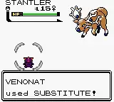 - In Generation I games, if the player used Substitute, then looked at the stats of a Pokémon in their party and then exited the menu, the opponent's Pokémon sprite would change to a glitchy version of the Pokémon that was just viewed.