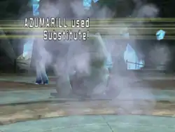 Substitute (Japanese: みがわり Scapegoat) is a non-damaging Normal-type move introduced in Generation I. It was TM50 in Generation I before losing its TM status in Generation II. It regained its TM status as TM90 from Generation IV, until Pokémon: Let's Go, Pikachu! and Let's Go, Eevee!, where it was TM08. It is TR20 in Generation VIII. It was Mr. Mime's signature move in Generation II.