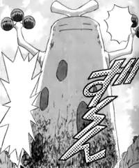 A Sudowoodo blocking the way of Red and his Pokémon in Sudowoodo's Toll Charges while they were trying to cross a bridge. With the help of Clefairy, Sudowoodo was able to get its act together until the bridge collapsed, which caused it to walk away sadly.