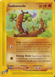 Sudowoodo (Japanese: ウソッキー Usokkie) is a Fighting-type Basic Pokémon card. It is part of the Aquapolis expansion.