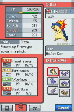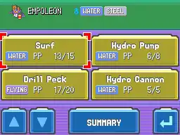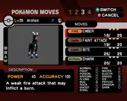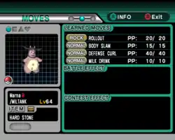 | Pokémon Info | Trainer Memo | Pokémon Skills | Battle Moves | Battle Moves (description) |