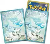 In celebration of the reopening of Pokémon Center Sapporo on December 1, 2016, many new winter-themed items of merchandise were released in Pokémon Centers and Pokémon Stores across the country. Among these were the Pokémon Center Sapporo R Deck Case & Sleeves (Japanese: デッキケース&シールド ポケモンセンターサッポロR Deck Case & Shield: Pokémon Center Sapporo R), each of which feature illustrations by kawayoo depicting the updated Pokémon Center Sapporo mascots Pikachu, Alolan Vulpix, and Popplio, as well as several other Pokémon enjoying the snow. The product includes a deck case with space to store at least 90 cards, two card dividers, and a set of 64 card sleeves.