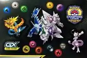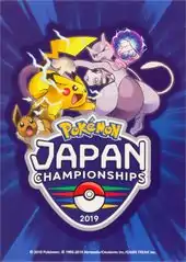 The first Champion's League meeting of the 2019-2020 season, and the final major event to occur during the Sun & Moon Era, was held in Tokyo at the Tokyo International Exhibition Center on September 22, 2019. All competitors were given an Eevee promotional card featuring the 2020 Championship Series logo upon entry. Competitors could also earn Play Points by participating in various corner events at the meeting and redeem them for prizes. These events included the main Champion's League tournament, the 4-League Battle, the 3 on 3 Battle, and the Shield Battle. Competitors could, however, only redeem Play Points once during the meeting, a new rule brought into effect for the 2019-2020 season. 2 Play Points could be redeemed for a set of stickers featuring focal Tag Teams from recent sets. At 6 Play Points, competitors could redeem the stickers and their choice of 1 of 3 promotional cards: Jirachi, Volcanion, or Mewtwo. 10 Play Points would earn competitors 1 of 9 prior Mirror Holofoil promotional prints of the Basic Energy cards at random, their choice of previous bracket promotional card, and the stickers. At 14 Play Points, competitors could earn a random Mirror Holofoil Energy card, their choice of previous bracket promotional card, the set of stickers, and their choice of 1 of 6 possible promotional Pokémon-GX cards: Espeon-GX, Umbreon-GX, Necrozma-GX, Leafeon-GX, Glaceon-GX, or Sylveon-GX. All were previously available in Champion's League meetings held during the 2018-2019 season. The top bracket of 20 Play Points would earn players their choice of promotional Pokémon-GX card, a random Mirror Holofoil Energy card, the set of stickers, and 1 each of the Jirachi, Volcanion, and Mewtwo promotional cards.