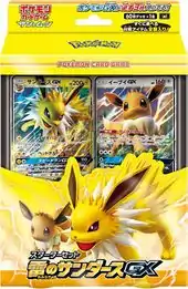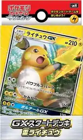 Available exclusively at Toys "R" Us stores in Japan from December 9, 2016 was the Toys "R" Us Limited GX Starter Set (Japanese: トイザらス限定 GXスターターセット). This deluxe product includes all 3 Sun & Moon Starter Sets, featuring the final evolutions of the Alola region starter Pokémon: Decidueye, Incineroar, and Primarina. It also comes with Pikachu and Mimikyu promotional cards.