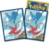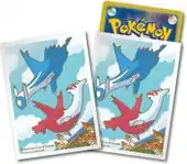 - The Pokémon Center Osaka DX Sleeves (Japanese: デッキシールド ポケモンセンターオーサカDX Deck Shield: Pokémon Center Osaka DX) feature Pikachu and Eevee riding the Legendary Birds Articuno, Zapdos, and Moltres as they soar above a cityscape.