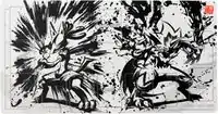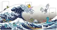 Pokémon Caricatures merchandise: The scenes depicted on these items pay homage to the series of emakimono, picture scrolls, Chōjū-jinbutsu-giga, literally "Animal-person Caricatures", with a Pokémon twist. All scenes are derived from sections of the first scroll and feature Infernape, Chimchar, Azumarill, and Marill bathing by a river, substituting the monkeys and rabbits of the original; Decidueye practicing archery alongside Chespin, Greninja, Plusle, Minun, and Braixen, mirroring the poses of the frog, rabbits, and fox in the original; Croagunk, Pikachu, and Buneary following a robbery, emulating the frog and rabbits in the original; and Buneary and Froakie playing sumo, substituting the rabbit and frog present in the original.